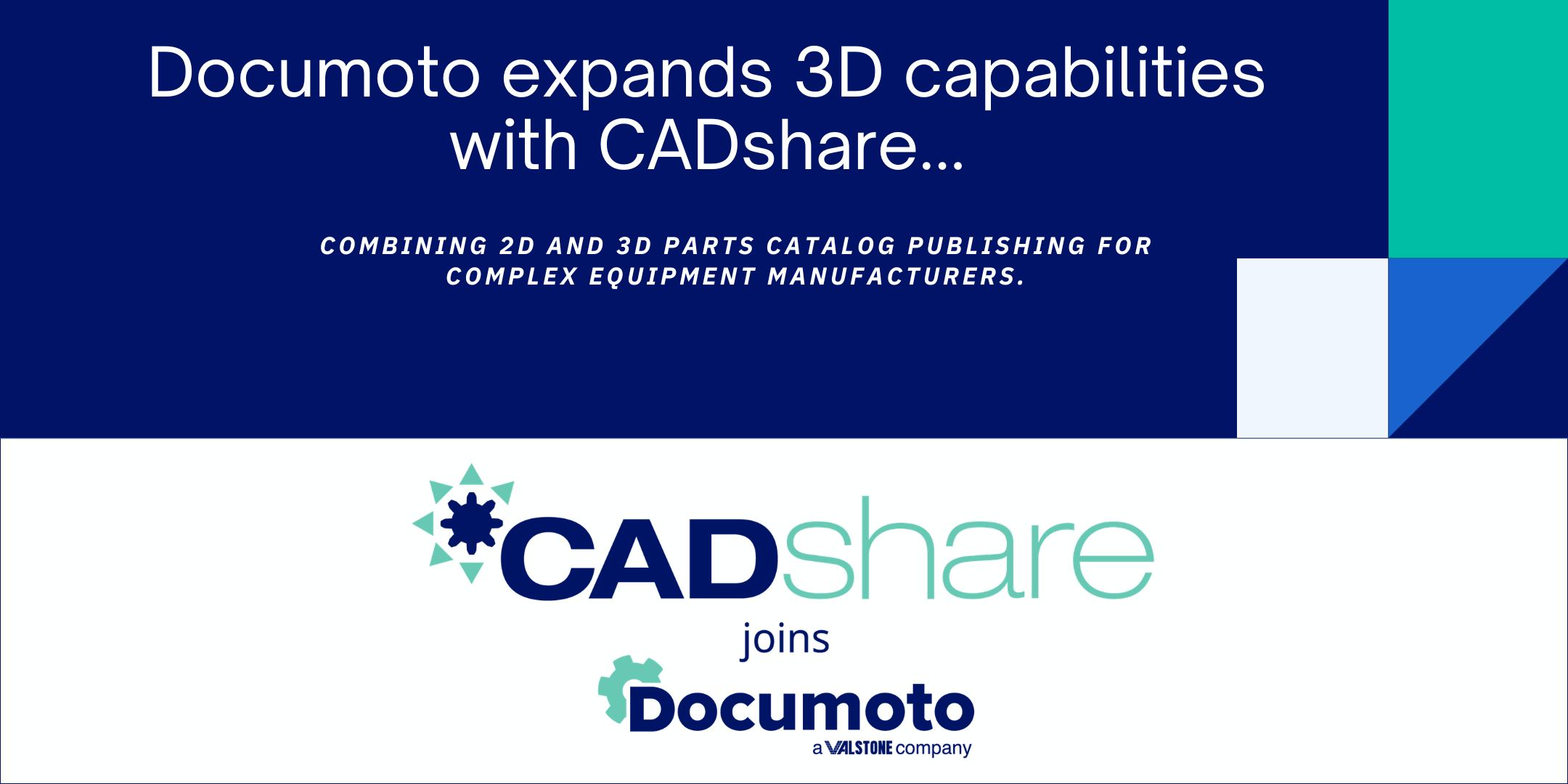 CADshare has developed specialized technology for managing complex equipment models and enabling 3D parts identification. The acquisition enables Documoto to close a key capability gap in 3D catalog visualization while continuing to support the publishing workflows manufacturers rely on for service and aftermarket operations.